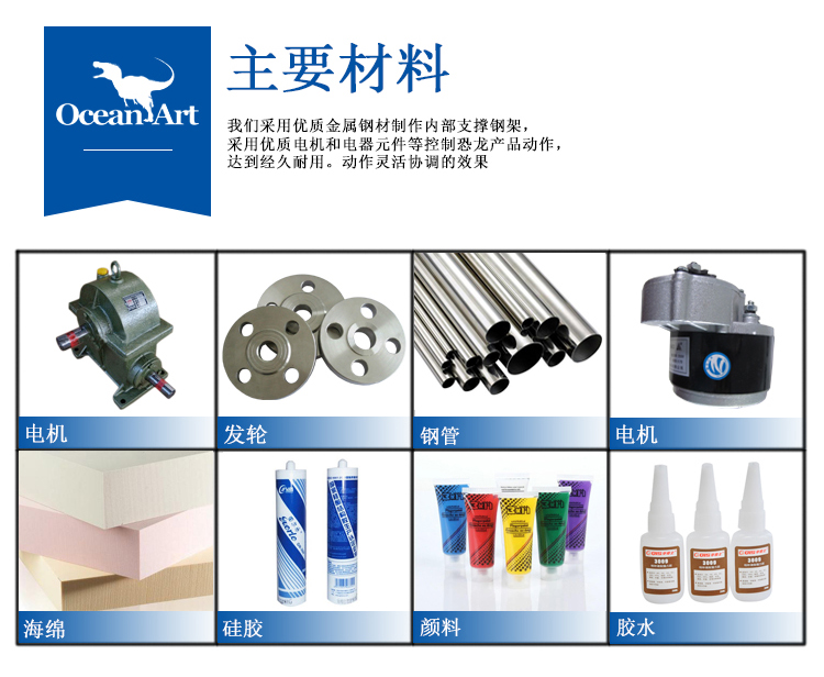 4. 采用優質電機和電器元件控制恐龍展品動作,達到經久耐用動作靈活協調的效果。